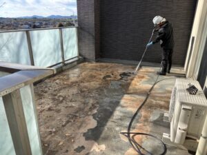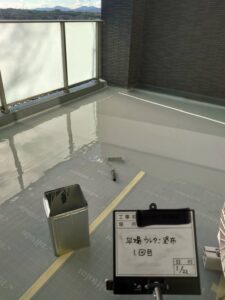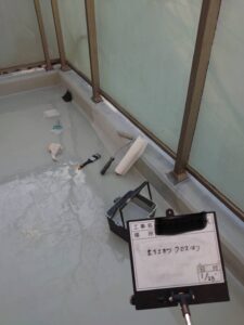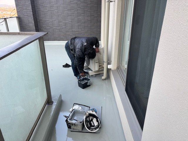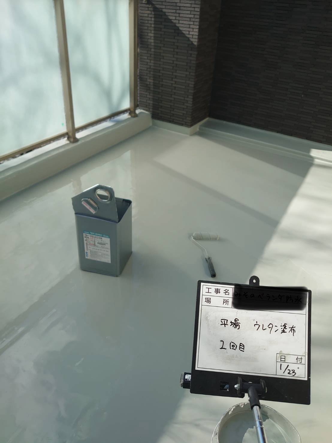 ベランダのウレタン防水承りました。表面塗膜を剥がしウレタンX-1工法にて