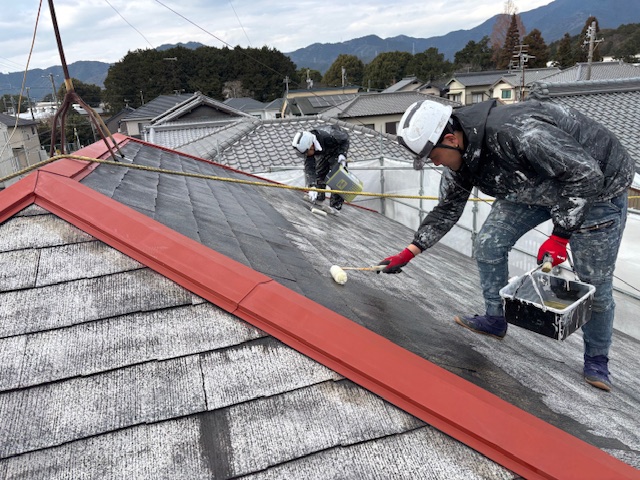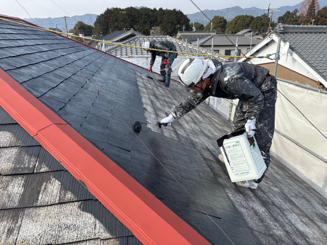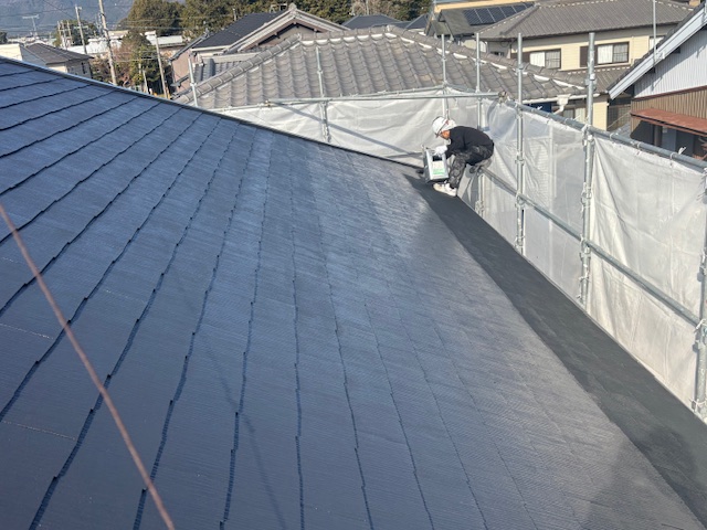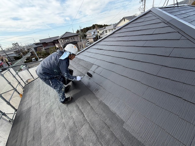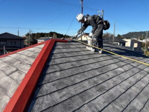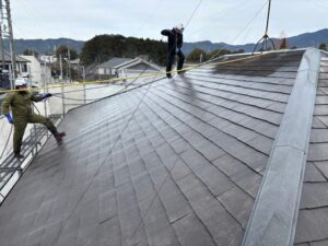 屋根はプレミアムルーフシリコン仕上げ、壁は微弾性フィラーをマスチックローラー
