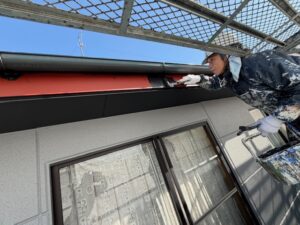 で厚膜付けて弱溶剤シリコン仕上げ、樋、トタン部は錆止め後、弱溶剤シリコン仕上げ
