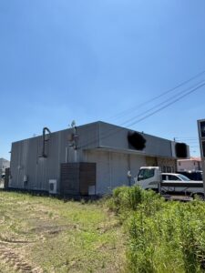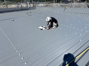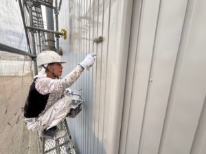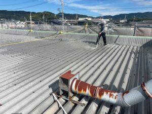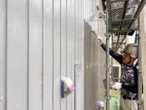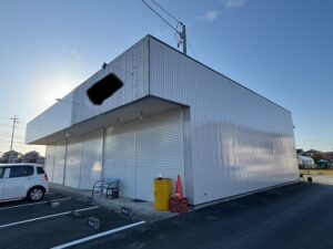 屋根、壁トタン、樋、シャッターなど弱溶剤シリコン仕上げです。屋根はボルト